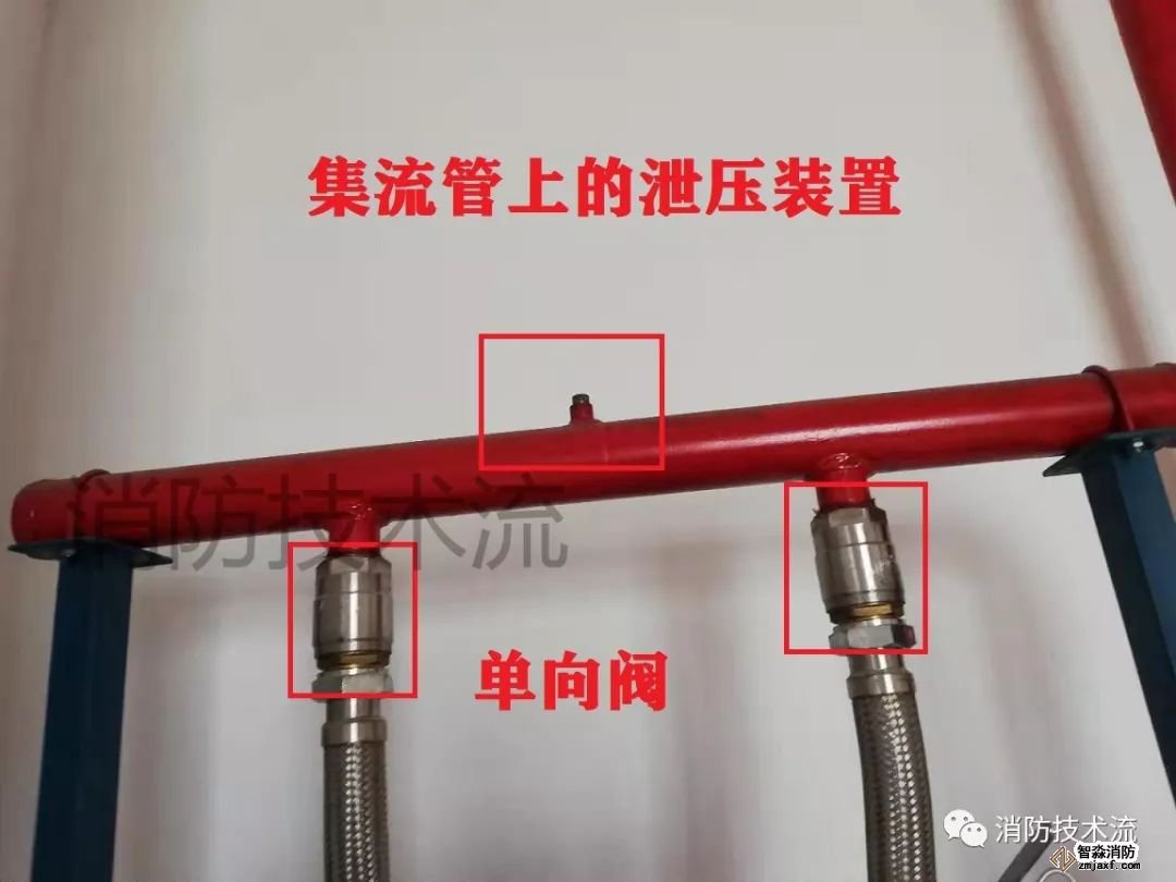 圖四:滅火劑釋放管路上的單向閥及集流管上的泄壓裝置