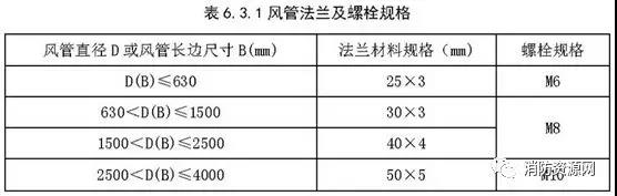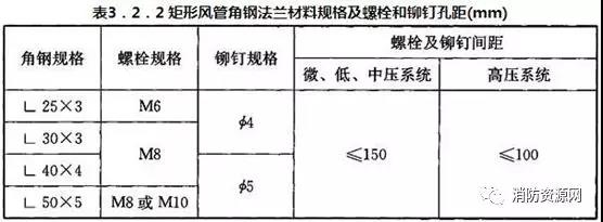 二、金屬風(fēng)管采用法蘭連接時(shí),法蘭材料規(guī)格應(yīng)按《建筑防煙排煙系統(tǒng)技術(shù)標(biāo)準(zhǔn)》表6.3.1選用,風(fēng)管接口的連接應(yīng)嚴(yán)密、牢固,法蘭墊片應(yīng)為不燃材料(A級(jí)),厚度不應(yīng)小于3mm,不應(yīng)凸入管內(nèi)和法蘭外。螺栓孔的間距不得大于150mm,矩形風(fēng)管法蘭四角處應(yīng)設(shè)有螺孔。(6.3.1