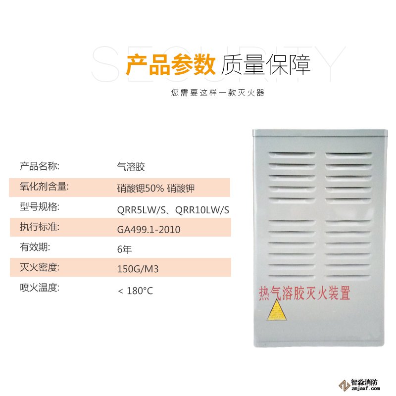二、氣溶膠的滅火機(jī)理: 氣溶膠滅火劑在使用前呈固體狀態(tài),使用時(shí),感溫,感煙探測(cè)器會(huì)自動(dòng)接通點(diǎn)火裝置,點(diǎn)燃?xì)馊苣z藥劑,并很快產(chǎn)生大量煙霧(氣溶膠 ),迅速?gòu)浡麄€(gè)防護(hù)區(qū)。氣溶膠產(chǎn)生的固體微粒主要是金屬氧化物及碳酸鹽等,當(dāng)遇到火焰時(shí),會(huì)產(chǎn)生一系列化學(xué)反應(yīng),這些反應(yīng)都是強(qiáng)烈的吸熱反應(yīng),可大量吸收燃燒時(shí)產(chǎn)生的熱量,同時(shí),燃燒會(huì)使氣溶膠的金屬離子與燃燒物中的自由基因產(chǎn)生鏈?zhǔn)椒磻?yīng),大量消耗這些活性基因,同時(shí)產(chǎn)生氮?dú)?、二氧化碳等惰性氣體,從而中斷燃燒鏈,而達(dá)到滅火目的。其主要的組成為:氣體發(fā)生器、電子氣化啟動(dòng)器、除塵降溫室、箱體四部分組成。